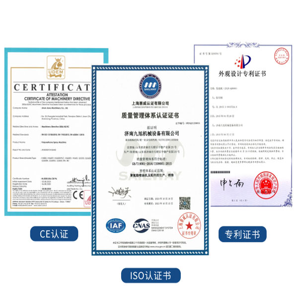 山東九旭機(jī)械科技有限公司歷經(jīng)十幾年的發(fā)展,已成長(zhǎng)為聚氨酯設(shè)備行業(yè)頗具實(shí)力的設(shè)備制造業(yè)之一。企業(yè)主要產(chǎn)品:聚氨酯高壓噴涂機(jī)、聚氨酯發(fā)泡機(jī)、聚氨酯噴涂機(jī)、聚脲設(shè)備、聚氨酯發(fā)泡設(shè)備、聚氨酯發(fā)泡機(jī)等關(guān)于設(shè)備配件(聚氨酯高壓噴槍、槍嘴、加熱管道、料塊、摩擦副、增壓泵、混合式、提料泵等)也是堅(jiān)持最好的質(zhì)量服務(wù)用戶,并承接:外墻保溫、冷庫(kù)保溫發(fā)泡等工程。山東九旭機(jī)械科技有限公司已通過(guò)ISO9001:2015質(zhì)量管理體系認(rèn)證和國(guó)家高新技術(shù)企業(yè)認(rèn)證,目前山東九旭機(jī)械設(shè)備已領(lǐng)跑中國(guó)聚氨酯設(shè)備行業(yè),成為廣大客戶之首選。